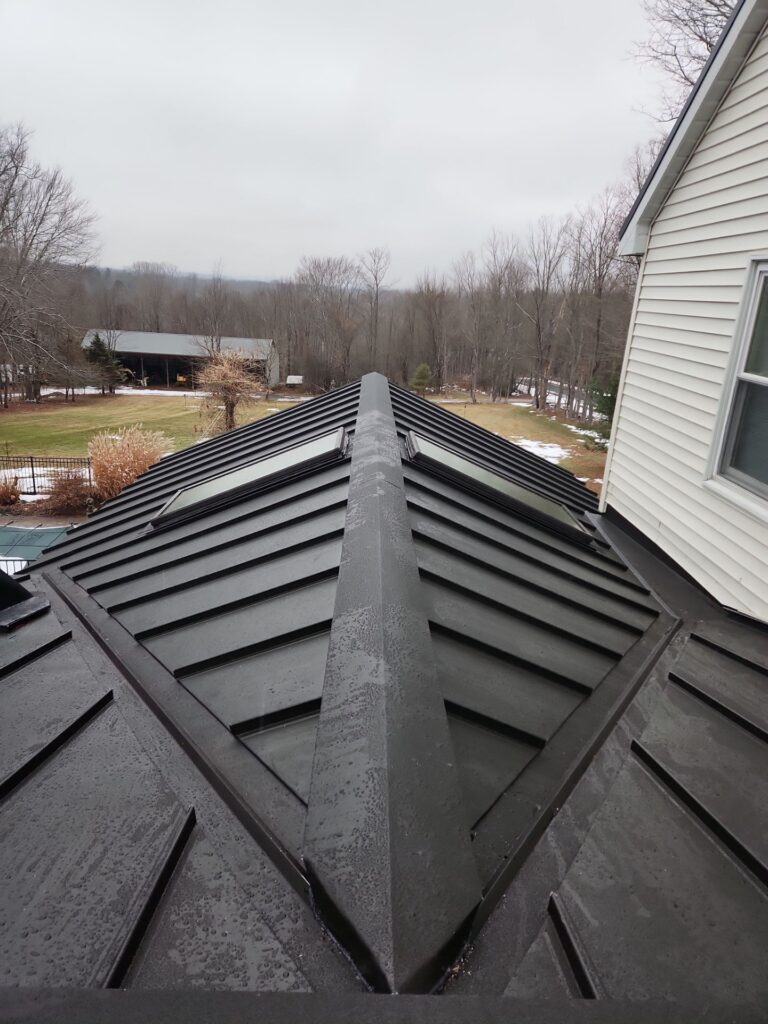 “The roofing crew brings a machine, and they roll a long metal panel right on site,” Gary explained. “The panel runs from the peak of the roof the whole way down, so there’s no place where we could have ice or snow back up into the house.”